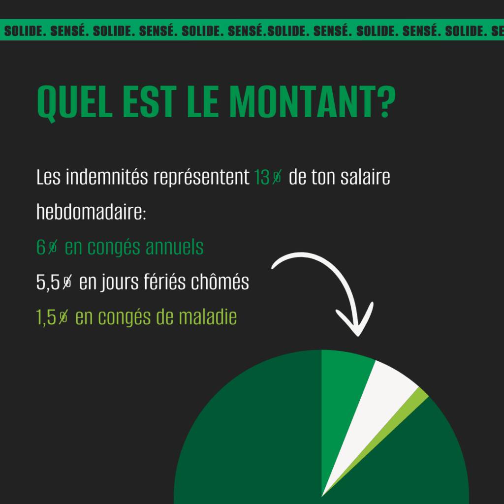 • votre paye de vacances (13 % de votre salaire brut, remise deux fois par année).